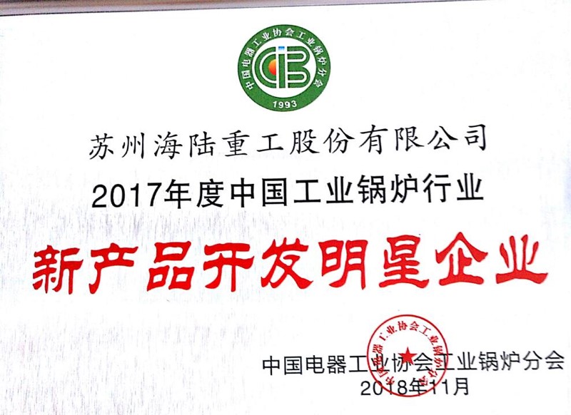 “2017年度中國(guó)工業(yè)鍋爐行業(yè)新產(chǎn)品開(kāi)發(fā)明星企業(yè)"